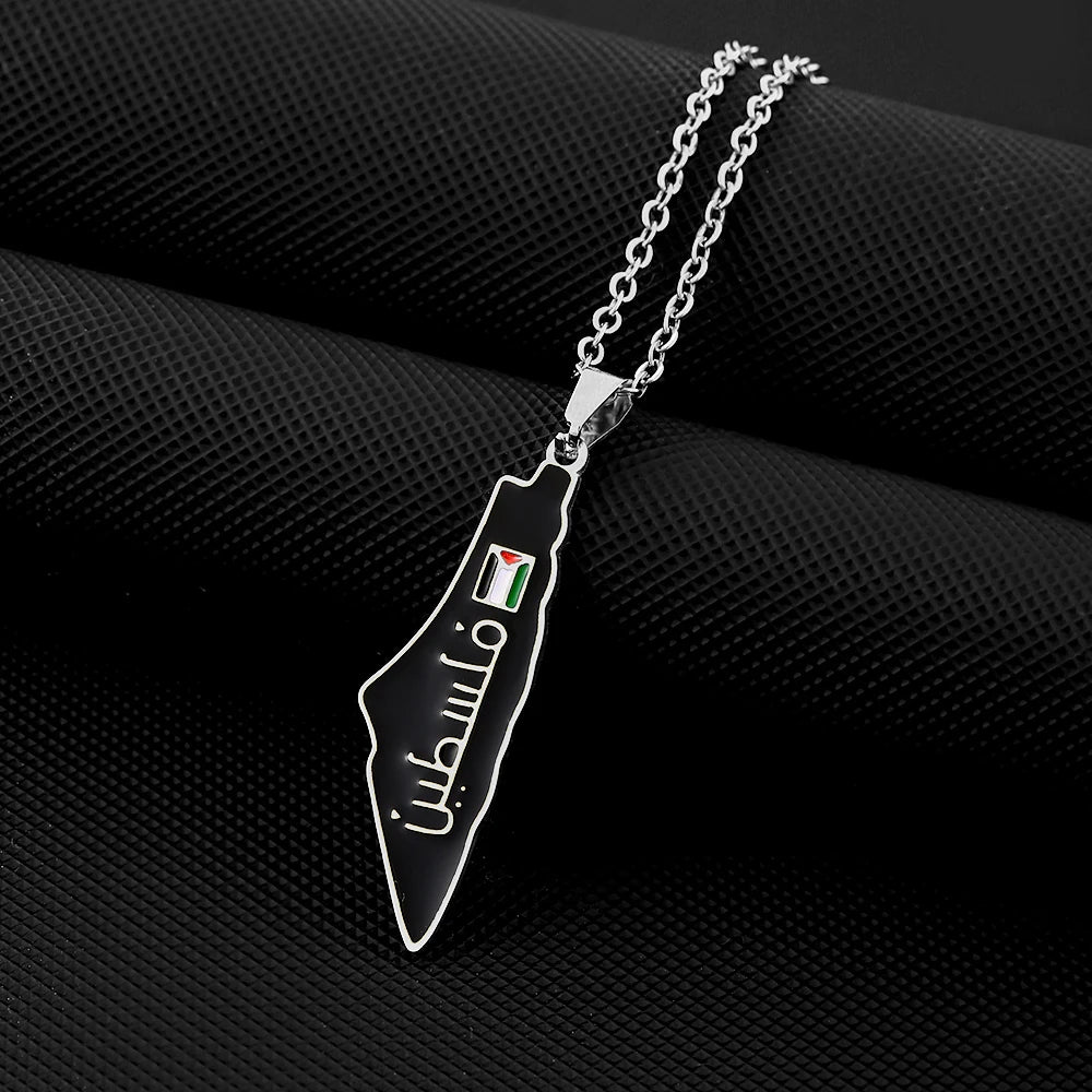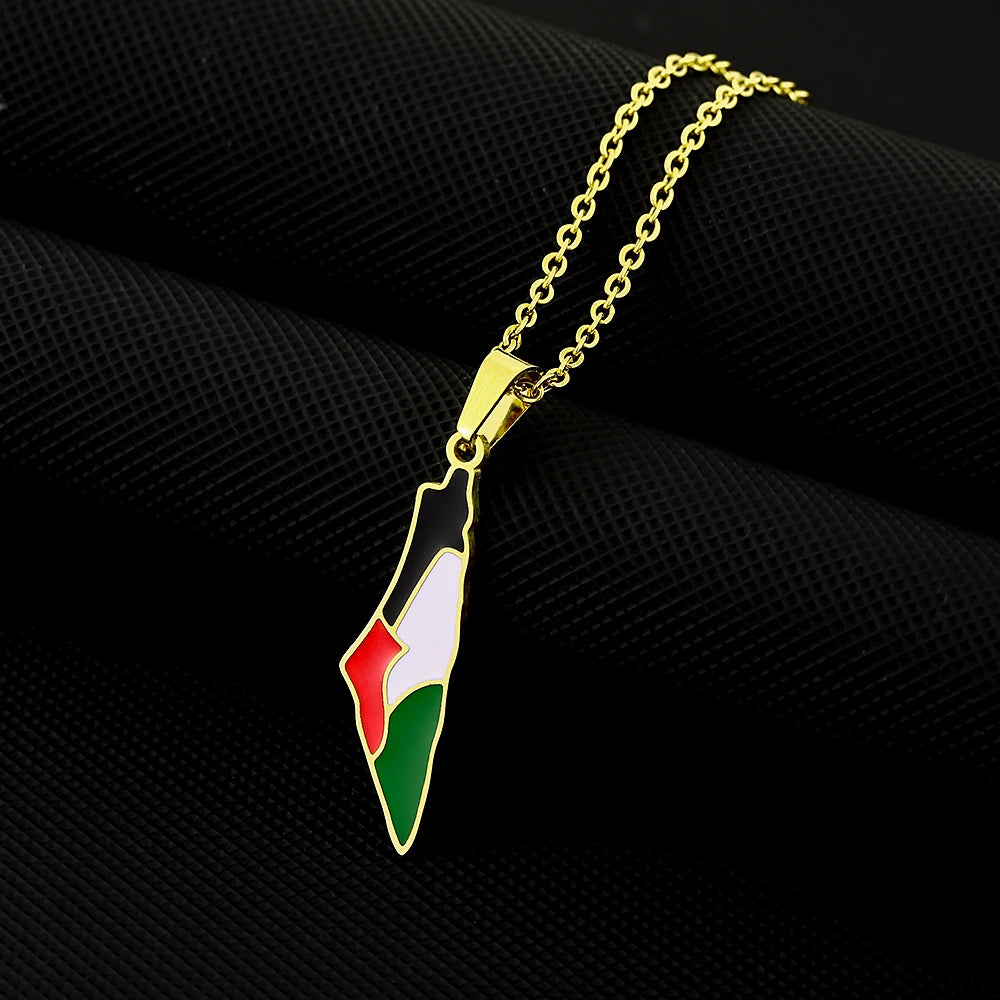 Diese stilvolle Halskette in Form der Palästina-Karte ist ein kraftvolles Statement für Identität und Zugehörigkeit. Der Anhänger kombiniert die Konturen des Landes mit den Farben der palästinensischen Flagge, was ihn zu einem besonderen und bedeutungsvollen Accessoire macht. Erhältlich in edler Gold- oder Silberoptik, ist die Kette ein Symbol des Stolzes und der Verbundenheit. Ob als persönliches Schmuckstück oder als Geschenk, diese Kette erzählt eine Geschichte von Heimat und Solidarität. Perfekt für alle, die ihre Wurzeln oder ihre Unterstützung auf elegante Weise zeigen möchten.